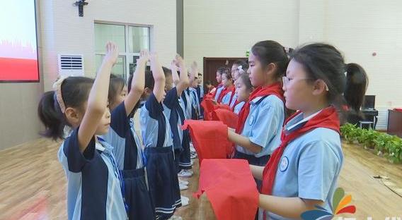 活动现场,伴随着庄严的《出旗曲》和嘹亮的《中国少年先锋队队歌》,老队员为新队员佩戴上鲜艳的红领巾,新老队员互敬队礼。全体少先队员在大队辅导员老师的带领下,高举右手,庄严宣誓:时刻准备着,为共产主义事业而奋斗!雄壮的誓言、铿锵有力的呼号响彻校园。随后,学校相关负责人表扬悉心关怀的辅导员,勉励茁壮成长的老队员,鞭策正在成长的新队员,鼓励他们在党的光辉沐浴下,高标准要求自己,努力学习,全面发展,为红领巾争光,为队旗添彩,做合格的社会主义事业建设者和接班人。